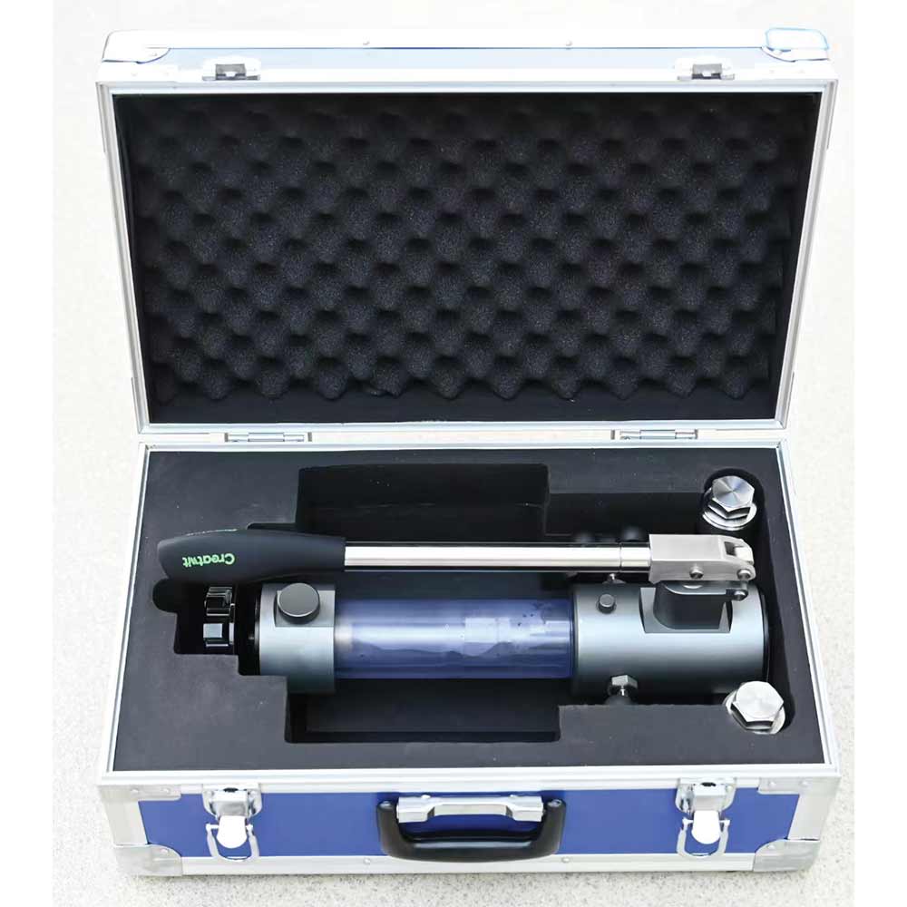 پمپ تست فشار هیدرولیک V17 با وجود ابعاد بسیار فشرده، امکان تولید فشار ساده و دقیق تا حداکثر ۷۰۰ بار (۱۰۰۰۰ psi) را فراهم میکند. این پمپ مجهز به شیر تنظیم دقیق(fine adjustment valve) است تا تنظیم با دقت انجام شود و تست مقایسهای با دقت بالا تضمین گردد. روغن یا آب دیونیزه بهعنوان سیال انتقال فشار استفاده میشود.